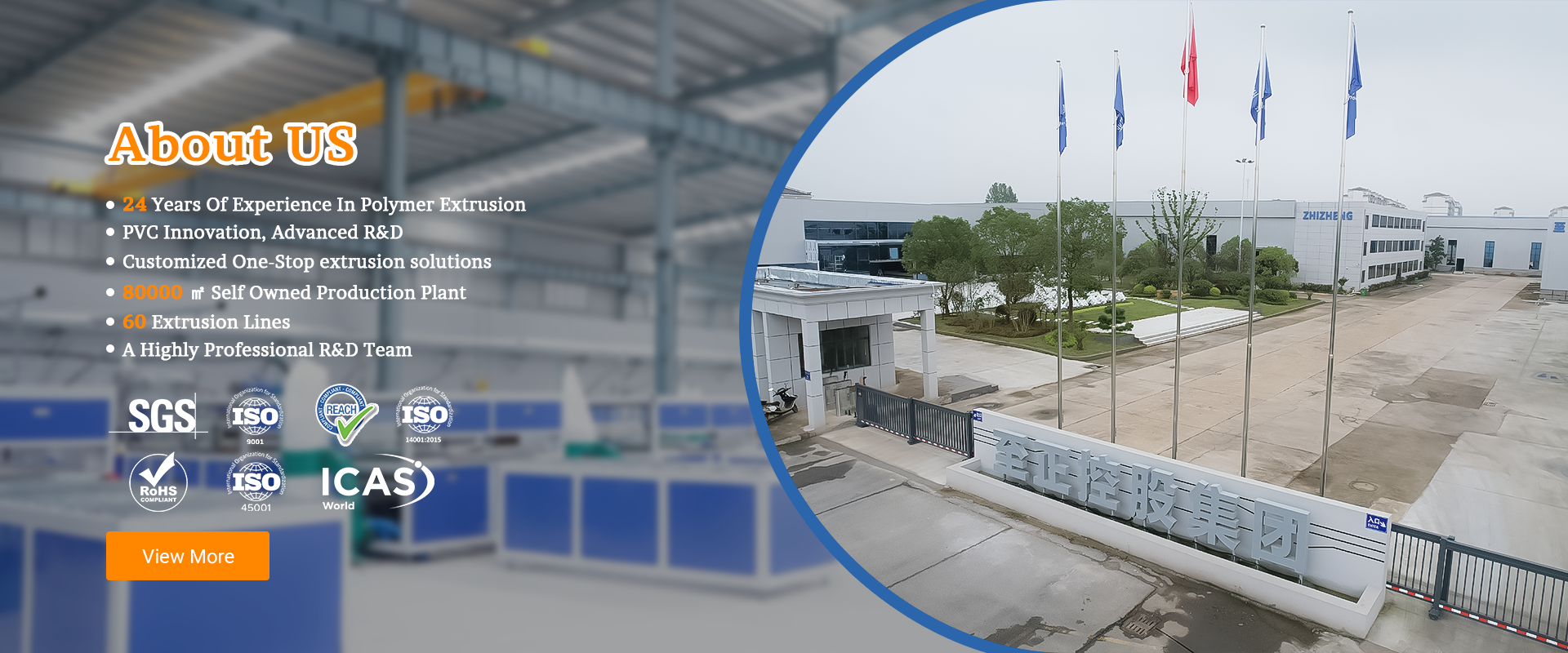 Zhizheng Holding Group is specialized in the production of functional polymer ma-terials for subdivided applications. From material function design, product structure design, product production process design, to Zhizheng have a professional technicateam. The most positive characteristic is the "cognition" to the material, the "understand-ing" to the application, the "recognition" to the production. Everything starts from thedemand "change material synthesis material", "design structure combination structure".'control quality to reduce cost". Zhizheng has a large capacity in material modification, ex-trusion production and injection production, and has set up production bases in Hang-zhou, Liaoning, Hubei and Guangxi.